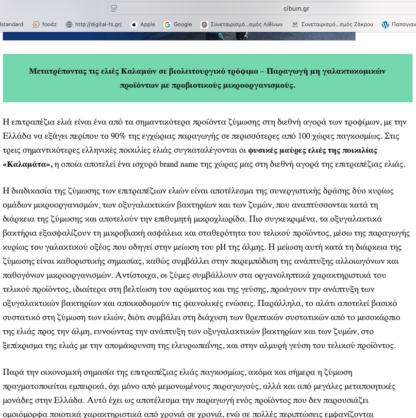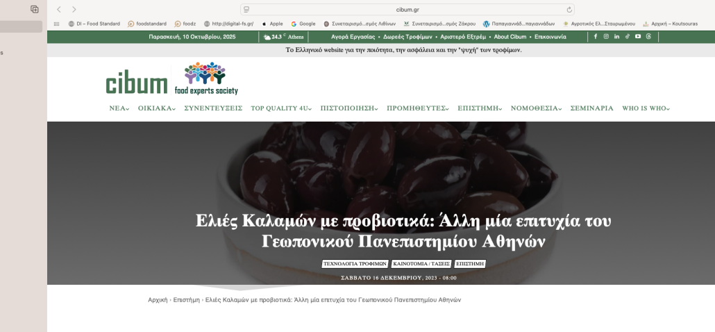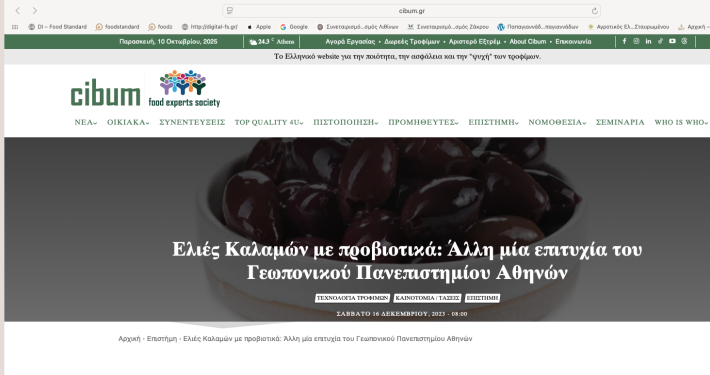 Άρθρο που δημοσιεύτηκε στο cibum.gr, αφιερωμένο στην καινοτομία του ProbioticOlives!